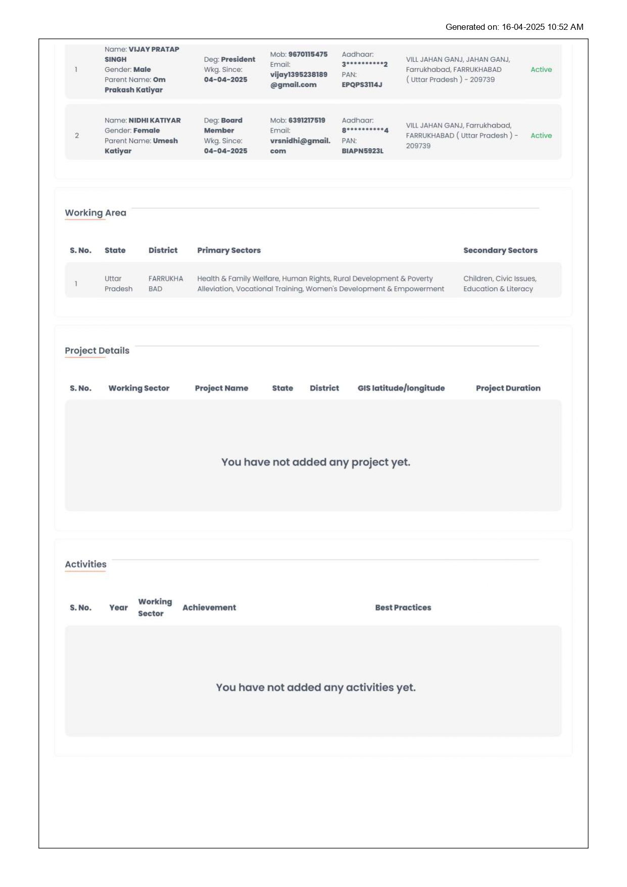 Sahyog List